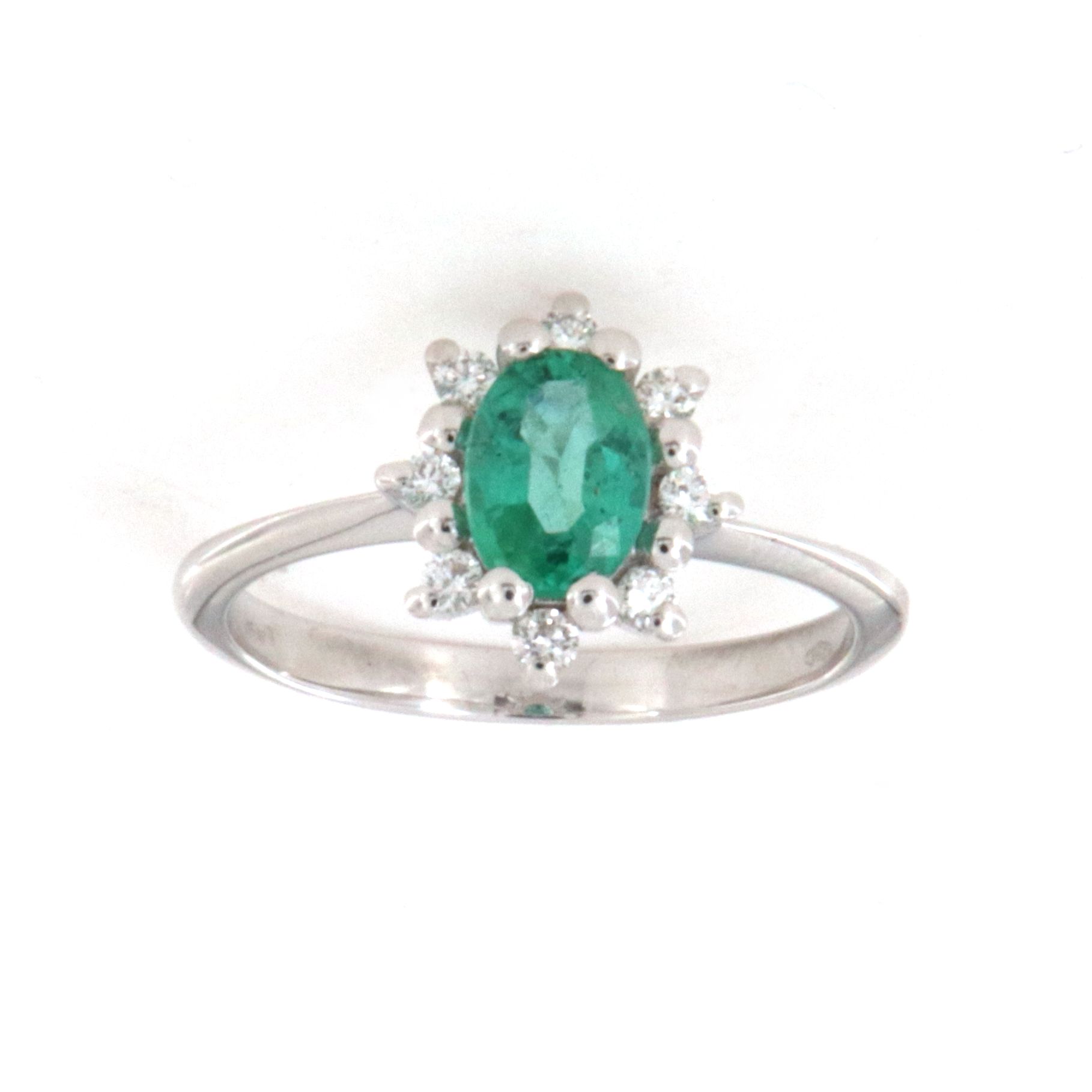 Anello in oro bianco con smeraldo 0,97ct con contorno di diamanti bianchi 0,16ct PGgioielli