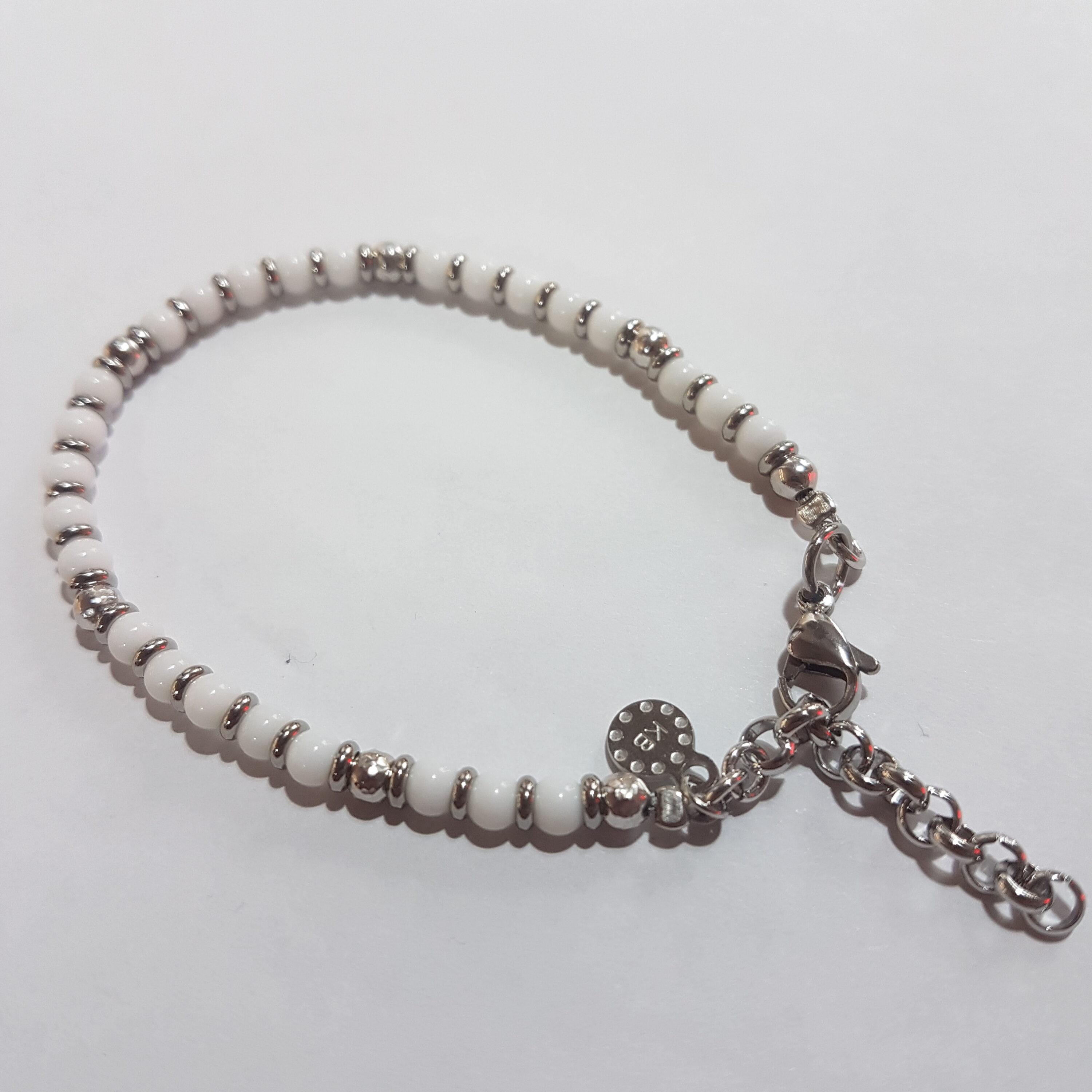 Bracciale Acciaio Pietre Naturali Agata Bianca K32 Kokonoe. Tutte le pietre utilizzate hanno origine naturali per cui la resa del colore della pietra può variare di modello in modello.