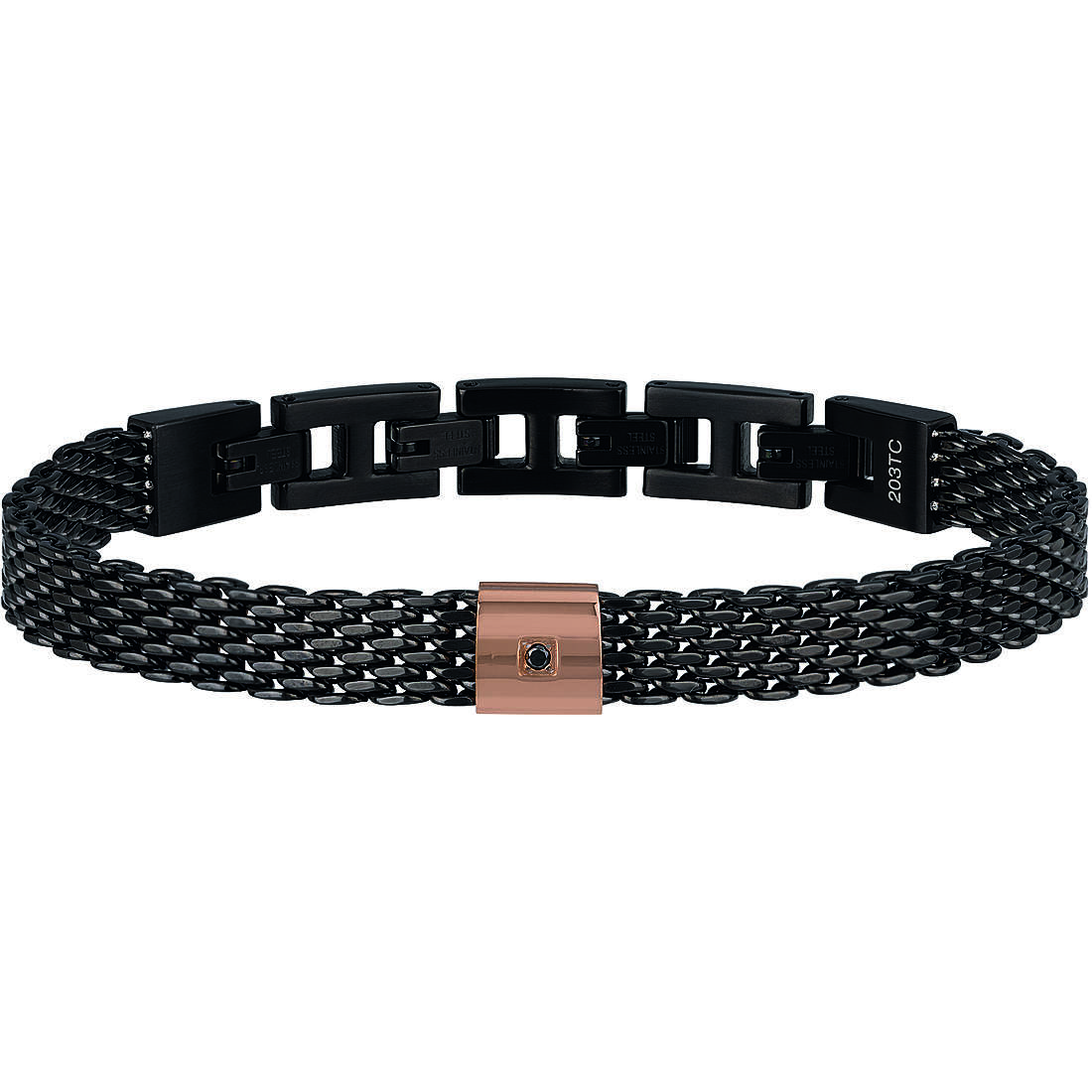 Il bracciale da uomo Black Diamond è allo stesso tempo contemporaneo e prezioso. Realizzato in acciaio, è reso super attuale dall’utilizzo della maglia mesh e dalla doppia colorazione, black e rose. Un diamante naturale nero incastonato nell’elemento centrale ne fa un accessorio sorprendente, dalla vestibilità perfetta grazie alla chiusura facilmente regolabile.
