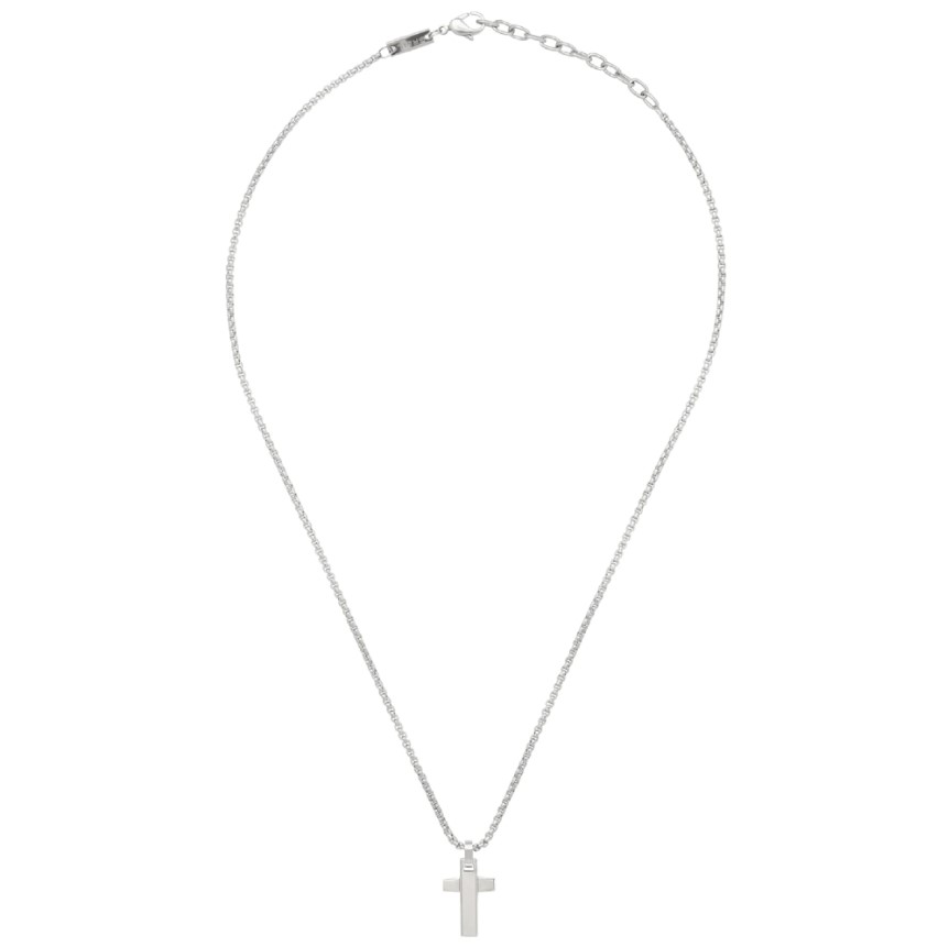 La collana Tag and Cross è in acciaio ed è caratterizzata da un pendente a forma di croce dal design moderno e lineare.