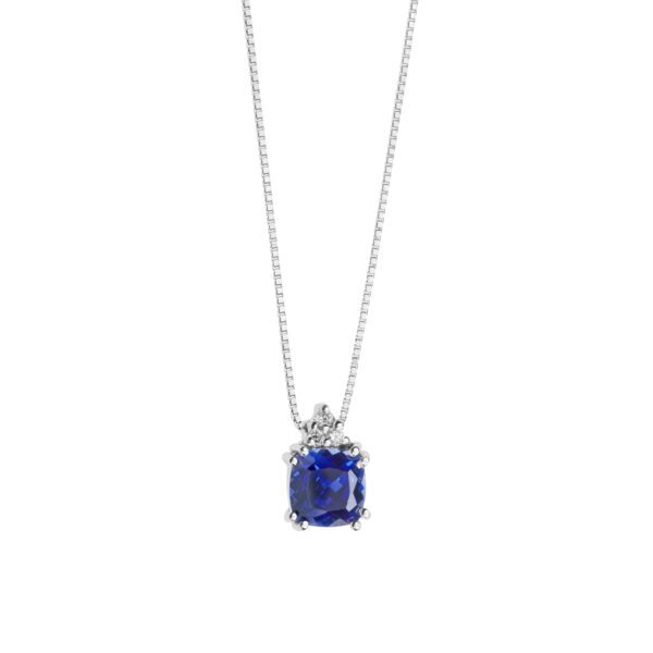 Girocollo in Oro 750 ‰ . Diamanti P.Ct. 3 Colore G Purezza SI. Zaffiro blu ricristallizzato antico 5×5 Ct. 0,75